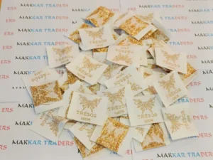 As a distinguished woven label manufacturer, we weave your brand’s story into every garment and accessory with precision and craftsmanship. Our customizable zari woven labels reflect your commitment to quality, enhancing the aesthetics of your products with elegance and sophistication.